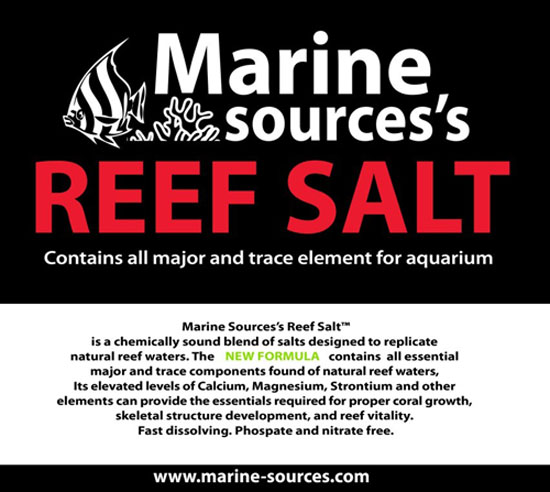 Marine Sources’s Reef Salt™ is a chemically sound blend of salts designed to replicate natural reef waters. -The new pro formula contains contains all essential major and trace components found in natural reef waters, -Its elevated levels of Calcium, Magnesium, Strontium and other elements can provide the essentials required for proper coral growth, skeletal structure development, and reef vitality. -It is fast dissolving and phospate and nitrate free.
